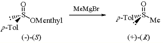 (R)-(+)-Methyl p-tolyl sulfoxide is prepared by the nucleophilic displacement of (-)- (1R,2S,5R)-Menthyl (S)-p-Toluenesulfinate with methyl Grignard with complete inversion of configuration at sulfur (eq 1).