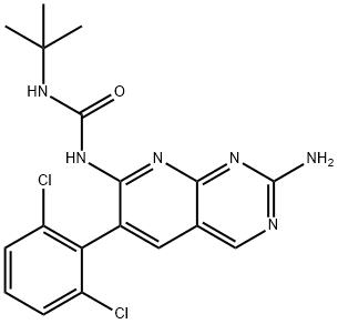 PD089828 1-(2-Amino-6-(2,6-dichlorophenyl)pyrido[2,3-d]pyrimidin-7-yl)-3-(tert-butyl)urea Urea, N-[2-amino-6-(2,6-dichlorophenyl)pyrido[2,3-d]pyrimidin-7-yl]-N'-(1,1-dimethylethyl)- | [Molecular Formula]