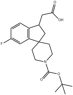 - 2-(1'-(tert-Butoxycarbonyl)-6-fluoro-2,3-dihydrospiro[indene-1,4'-piperidin]-3-yl)acetic acid;2-(1'-(Tert-Butoxycarbonyl)-6-Fluoro-2,3-Dihydrospiro[Indene-1,4'-Piperidine]-3-Yl)Acetic Acid;2-(1-(Tert-Butoxycarbonyl)-6-Fluoro-2,3-Dihydrospiro[Indene-1,4-Piperidine]-3-Yl)Acetic Acid(WX105062);Spiro[1H-indene-1,4'-piperidine]-3-acetic acid, 1'-[(1,1-dimethylethoxy)carbonyl]-6-fluoro-2,3-dihydro-