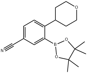 - 2-(4-Tetrahydropyranyl)-5-cyanophenylboronic acid pinacol ester;4-(Tetrahydro-2H-pyran-4-yl)-3-(4,4,5,5-tetramethyl-1,3,2-dioxaborolan-2-yl)b...;Benzonitrile, 4-(tetrahydro-2H-pyran-4-yl)-3-(4,4,5,5-tetramethyl-1,3,2-dioxaborolan-2-yl)-