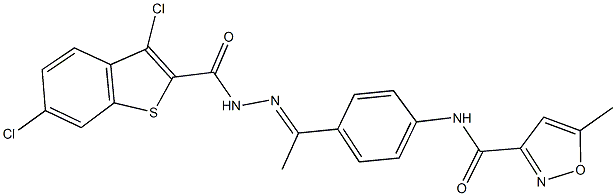 제품 카탈로그 >N-(4-{N-[(3,6-dichloro-1-benzothien-2-yl)carbonyl]ethanehydrazonoyl}phenyl)-5-methyl-3-isoxazolecarboxamide