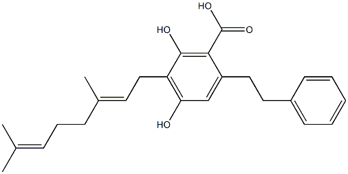 2-Phenethyl-4,6-dihydroxy-5-[(2E)-3,7-dimethyl-2,6-octadienyl]benzoic acid 구조식 이미지