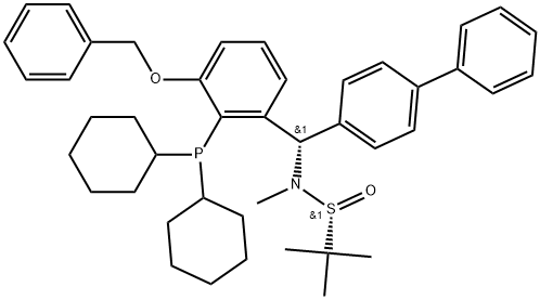 - S(R)]-N-[(S)-[(3-(Benzyloxy)-2-(dicyclohexylphosphino)phenyl]-(1,1'-biphenyl)methyl]-N,2-dimethyl-2-propanesulfinamide;2-Propanesulfinamide, N-[(S)-[1,1'-biphenyl]-4-yl[2-(dicyclohexylphosphino)-3-(phenylmethoxy)phenyl]methyl]-N,2-dimethyl-, [S(R)]-