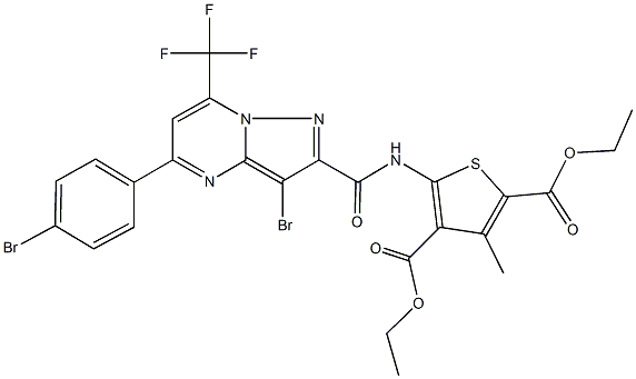 diethyl 5-({[3-bromo-5-(4-bromophenyl)-7-(trifluoromethyl)pyrazolo[1,5-a]pyrimidin-2-yl]carbonyl}amino)-3-methyl-2,4-thiophenedicarboxylate C화학적 특성, 용도, 생산