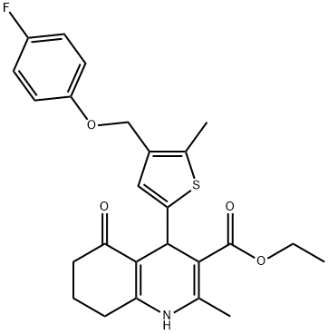 - ethyl 4-{4-[(4-fluorophenoxy)methyl]-5-methyl-2-thienyl}-2-methyl-5-oxo-1,4,5,6,7,8-hexahydro-3-quinolinecarboxylate;3-Quinolinecarboxylic acid, 4-[4-[(4-fluorophenoxy)methyl]-5-methyl-2-thienyl]-1,4,5,6,7,8-hexahydro-2-methyl-5-oxo-, ethyl ester