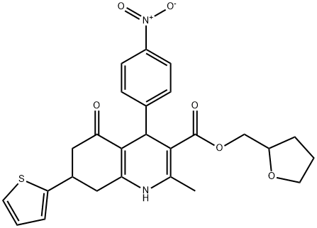 제품 카탈로그 >tetrahydrofuran-2-ylmethyl 2-methyl-4-(4-nitrophenyl)-5-oxo-7-(thiophen-2-yl)-1,4,5,6,7,8-hexahydroquinoline-3-carboxylate