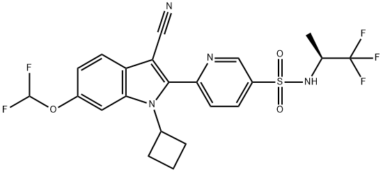 (S)-6-(3-Cyano-1-cyclobutyl-6-(difluoromethoxy)-1H-indol-2-yl)-N-(1,1,1-trifluoropropan-2-yl)pyridine-3-sulfonamide C화학적 특성, 용도, 생산