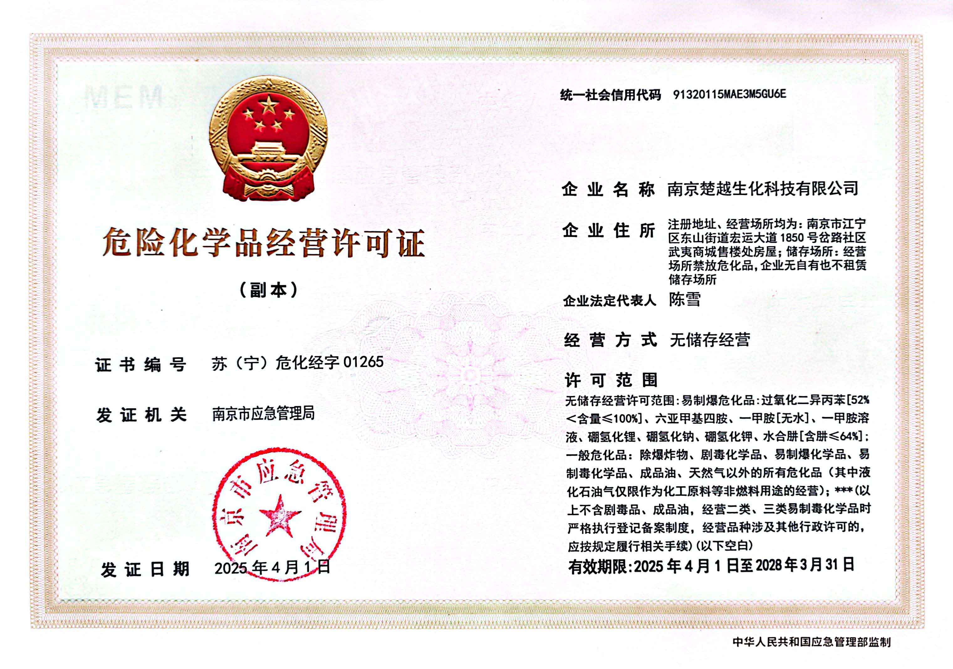 一般项目:生物农药技术研发;技术服务、技术开发、技术咨询、技术交流、技术转让、技术推广;化工产品销售(不含许可类化工产品);新型催化材料及助剂销售;专用化学产品销售(不含危险化学品);工程塑料及合成树脂销售;表面功能材料销售;新型有机活性材料销售;合成材料销售;技术推广服务;实验分析仪器销售;仪器仪表销售;技术玻璃制品销售;劳动保护用品销售;信息咨询服务(不含许可类信息咨询服务);进出口代理;石油制品销售(不含危险化学品);互联网销售(除销售需要许可的商品)(除依法须经批准的项目外,凭营业执照依法自主开展经营活动)