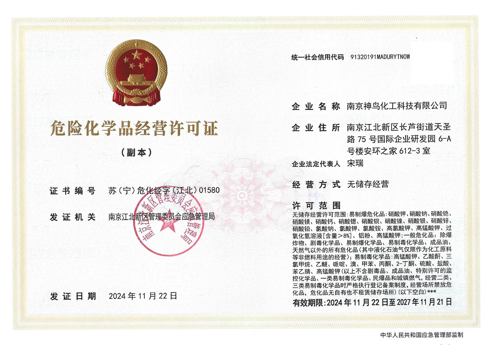 危险化学品经营许可证