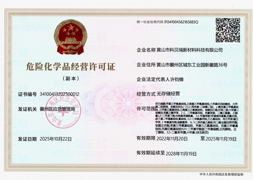 黄山市科贝瑞化工有限公司凝聚多位资深的有机硅,有机钛工程师,并于国内2所知名大学合作,专业致力与有机硅、有机钛等高科技含量产品的研究、开发、应用和生产;公司在安徽省黄山市建立有机硅开发和应用实验室,在山东省潍坊市建立有机钛开发和应用实验室,并在黄山市建立多功能生产车间和多套中试生产装置,在山东东营市、潍坊市分别以股份合作方式建立有机硅、有机鈦生产基地。