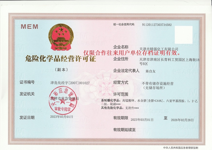 易制爆化学品:高锰酸钾,水合肼,六亚甲基四胺,1,2-乙二胺;其他危险化学品:1-氨基丙烷, 2-氨基丙烷, 2-氨基乙醇,氨溶液[含氨>10%],苯,苯胺, 1,2-苯二酚,1,3-苯二酚,1,4-苯二酚,苯酚、苯酚溶液,苯甲醚, 吡啶, 2-吡咯酮, 1-丙醇, 2-丙醇, 1,2-丙二胺, 1,3-丙二胺,丙二醇乙醚,丙二腈,丙酸, 丙酮,2-丙烯腈[稳定的],丙烯酸[稳定的], 2-丁酮, 2-丁氧基乙醇,多聚甲醛,二苯基甲烷二异氰酸酯, 1,2-二甲苯, 1,3-二甲苯, 1,4-二甲苯, N,N-二甲基苯胺, N,N-二甲基甲酰胺, N,N-二甲基乙醇胺,1,2-二甲氧基乙烷, 1,2-二氯丙烷,二氯甲烷,1,1-二氯乙烷, 1,2-二氯乙烷, 2,2'-二羟基二乙胺,二亚乙基三胺, 二乙胺,二异丙胺,二异丙醇胺,二正丁胺, 2-呋喃甲醇,环己胺, 环己酮,环己烷, 1,2-环氧丙烷,环氧乙烷, 甲苯,甲苯二异氰酸酯, 甲醇, 2-甲基-1-丙醇, 2-甲基-2-丙醇, 4-甲基-2-戊酮,N-甲基苯胺,2-甲基吡啶,3-甲基吡啶,4-甲基吡啶, 甲基丙烯酸[稳定的],甲基丙烯酸甲酯[稳定的],N-甲基吗啉,2-甲基哌啶,3-甲基哌啶,4-甲基哌啶,N-甲基哌啶,甲基叔丁基醚, 甲酸,甲酸甲酯,甲酸乙酯,2-甲氧基乙酸乙酯, 聚乙烯聚胺, 糠醛,喹啉,邻苯二甲酸酐[含马来酸酐大于0.05%], 硫酸,硫酸二甲酯,硫酸二乙酯,六甲基二硅烷,六亚甲基亚胺, 1-氯-2,3-环氧丙烷,氯铂酸,氯化亚砜,吗啉,哌啶,哌嗪,氢溴酸,氢氧化钾,氢氧化钾溶液[含量≤30%],氢氧化钠、氢氧化钠溶液[含量≥30%],壬基酚,壬基酚聚氧乙烯醚,溶剂油[闭杯闪点≤60℃],三氯甲烷, 三氯乙烯, 三亚乙基四胺,三乙胺,三正丙胺,石脑油,石油醚, 叔丁胺, 四氯化碳,四氯乙烯, 四氢呋喃, 四亚乙基五胺, 碳酸二甲酯,碳酸二乙酯, 无水肼[含肼>64%],溴,溴水[含溴≥3.5%],盐酸,乙醇[无水], 乙二醇单甲醚,乙二醇二乙醚,乙二醇乙醚,乙二醇异丙醚,乙腈,乙醚, 乙酸[含量>80%]、乙酸溶液[10%<含量≤80%], 乙酸酐,乙酸甲酯,乙酸乙二醇乙醚,乙酸乙酯,乙酸正丁酯,异丙醚,异辛烷, 原甲酸三甲酯,原甲酸三乙酯,正丁胺, 正丁醇, 正庚烷, 正己烷, 仲丁胺,含易燃溶剂的合成树脂、油漆、辅助材料、涂料等制品 [闭杯闪点≤60℃] 的无储存经营;纺织品、橡胶塑料制品、建筑装饰材料批发兼零售。