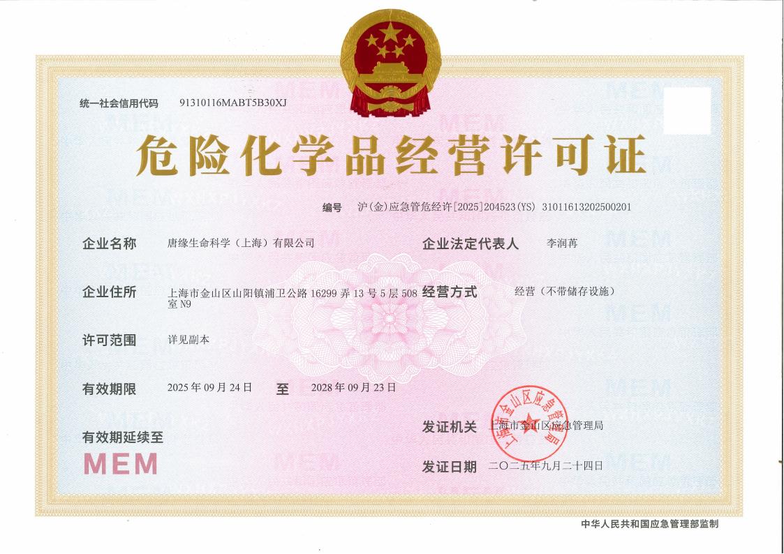 作为一家集研发生产、全球营销和专业化物流于一体的高科技企业,唐缘汇 集了全球20余万种化学品资源,产品涵盖有机、分析、生命科学、医药中间体、 材料科学和航空航天等众多领域。唐缘致力于解决科研化学品供应的瓶颈问题, 不断缩短进口供货周期,与全球优质供应商合作,并建立研发生产基地,扩充供 应品种,加速中国制造。