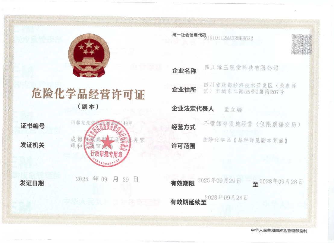 四川琢玉砚堂科技有限公司是一家集生产、加工、出口为一体的化工生产企业,主要经营医药中间体和各种工业化学品。自公司成立以来,我们坚持“诚信经营、严把质量关、客户为上帝”的精神,得到国内外客户的一致好评。