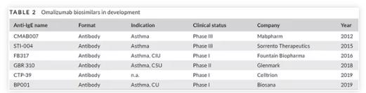 奥马珠单抗之后的IgE抗体药物开发