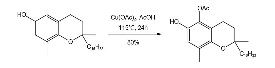 醋酸铜还能氧化烃类底物的C-H键。在氧气和吗啉存在下,醋酸铜可以催化苯酚的邻位羟基化反应。当隔绝氧气时,定量醋酸铜在醋酸存在下可以实现苯酚的邻位乙酸化反应。