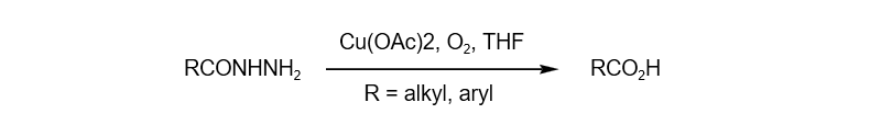 醋酸铜能与含氮化合物有效配位,作为路易斯酸参与含氮化合物的反应。例如: 在氧气存在下,催化量的醋酸铜可实现酰肼到羧酸的转换。