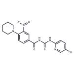 | Product Name: | MAC-545496 | | Synonyms: | MAC-545496;Benzamide, N-[[(5-chloro-2-pyridinyl)amino]thioxomethyl]-3-nitro-4-(1-piperidinyl)-;N-[[(5-Chloro-2-pyridinyl)amino]thioxomethyl]-3-nitro-4-(1-piperidinyl)benzamide;Bacterial,S. aureus,Antivirulence,Inhibitor,MAC545496,mprF,nanomolar,GraR,MAC-545496,MRSA,survival,inhibit,biofilm,MAC 545496,virulence,β-lactam;N-((5-Chloropyridin-2-yl)carbamothioyl)-3-nitro-4-(piperidin-1-yl)benzamide;MAC-545496, 10 mM in DMSO;MAC-545496 ,S6771 | | CAS: | 838810-96-1 | | MF: | C18H18ClN5O3S | | MW: | 419.89 | | EINECS: | | | Mol File: | 838810-96-1.mol |  |