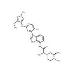 | Product Name: | 2091134-35-7 | | Synonyms: | JAK1-IN-4;AZD4205,JAK1-IN-4;JAK1IN4,JAK-1-IN-4,JAK1 IN 4;1-Piperazineacetamide, N-[3-[5-fluoro-2-[(3-methoxy-1-methyl-1H-pyrazol-4-yl)amino]-4-pyrimidinyl]-1H-indol-7-yl]-α,3,4-trimethyl-, (αR,3R)-;(αR,3R)-N-[3-[5-Fluoro-2-[(3-methoxy-1-methyl-1H-pyrazol-4-yl)amino]-4-pyrimidinyl]-1H-indol-7-yl]-α,3,4-trimethyl-1-piperazineaceta mide | | CAS: | 2091134-35-7 | | MF: | C26H32FN9O2 | | MW: | 521.6 | | EINECS: | | | Mol File: | 2091134-35-7.mol |  |