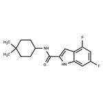 | Product Name: | NITD-349 | | Synonyms: | NITD-349;1H-Indole-2-carboxamide, N-(4,4-dimethylcyclohexyl)-4,6-difluoro-;inhibit,Bacterial,NITD349,NITD-349,NITD 349,Inhibitor;N-(4,4-Dimethylcyclohexyl)-4,6-difluoro-1H-indole-2-carboxamide;NITD-349, 10 mM in DMSO | | CAS: | 1473450-62-2 | | MF: | C17H20F2N2O | | MW: | 306.35 | | EINECS: | | | Mol File: | 1473450-62-2.mol |  |
