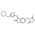 | Product Name: | S49076 | | Synonyms: | S49076;CS-2684;S4 9076;S4-9076;2,4-Thiazolidinedione, 3-[[2,3-dihydro-3-[[4-(4-morpholinylmethyl)-1H-pyrrol-2-yl]methylene]-2-oxo-1H-indol-5-yl]methyl]-;FGFR,S49076,Fibroblast growth factor receptor,inhibit,c-Met/HGFR,S 49076,Inhibitor,S-49076;(Z)-3-((3-((4-(morpholinomethyl)-1H-pyrrol-2-yl)methylene)-2-oxoindolin-5-yl)methyl)thiazolidine-2,4-dione;3-((3-((4-(Morpholinomethyl)-1H-pyrrol-2-yl)methylene)-2-oxoindolin-5-yl)methyl)thiazolidine-2,4-dione;S49076, 10 mM in DMSO | | CAS: | 1265965-22-7 | | MF: | C22H22N4O4S | | MW: | 438.5 | | EINECS: | | | Mol File: | 1265965-22-7.mol |  |