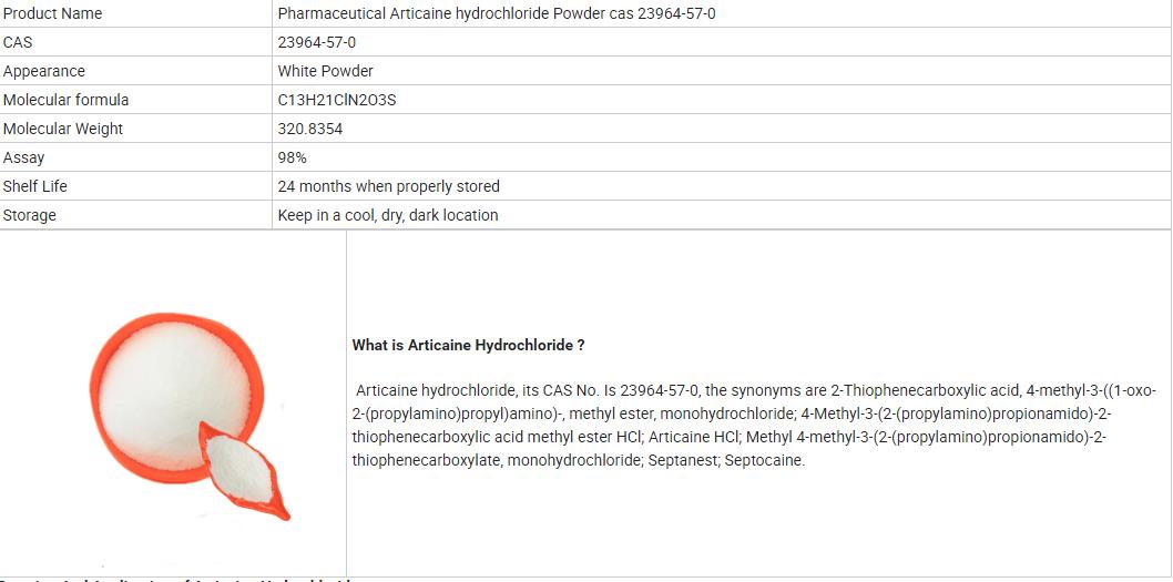 | Product Name: Articaine hydrochloride | CAS No.: 23964-57-0 |