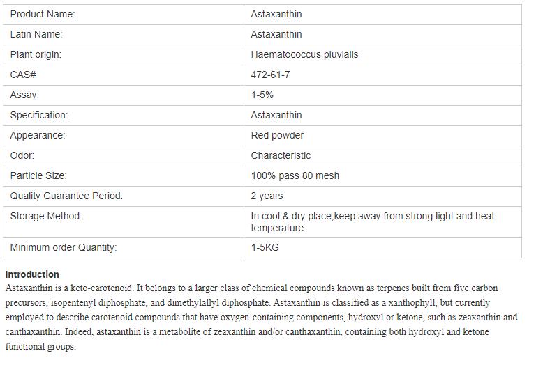 | Product Name: Astaxanthin | CAS No.: 472-61-7 |
