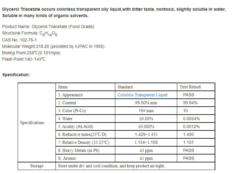 | Product Name: Triacetin | CAS No.: 102-76-1 |
