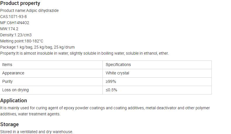 | Product Name: Adipohydrazide | CAS No.: 1071-93-8 |