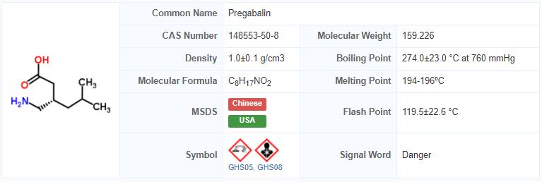 | Product Name: Pregabalin | CAS No.: 148553-50-8 |