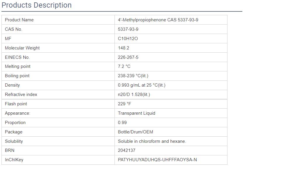 | Product Name: 4'-Methylpropiophenone | CAS No.: 5337-93-9 |