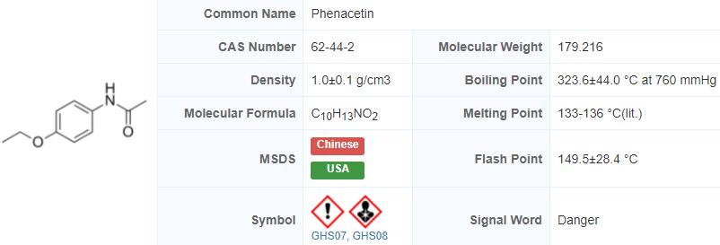| Product Name: Phenacetin | CAS No.: 62-44-2 |
