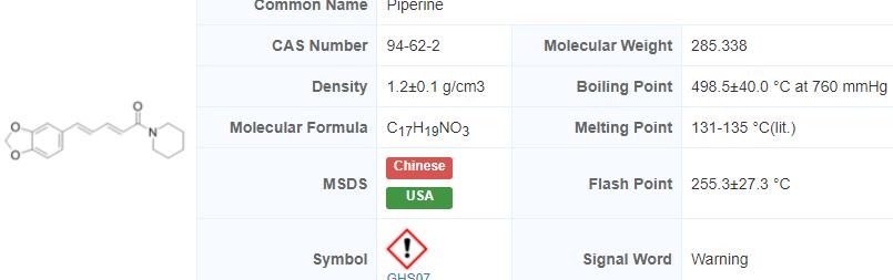 | Product Name: Piperine | CAS No.: 94-62-2 |