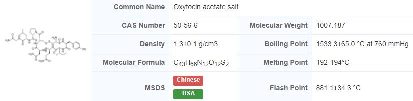 | Product Name: Oxytocin;Oxytocin acetate salt | CAS No.: 50-56-6 |