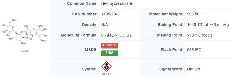 | Product Name: Neomycin sulfate | CAS No.: 1405-10-3 |