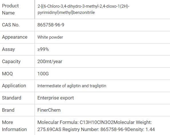 | Product Name: 2-[(6-Chloro-3,4-dihydro-3-Methyl-2,4-dioxo-1(2h)-pyriMidinyl)Methyl]benzonitrile | CAS No.: 865758-96-9 |