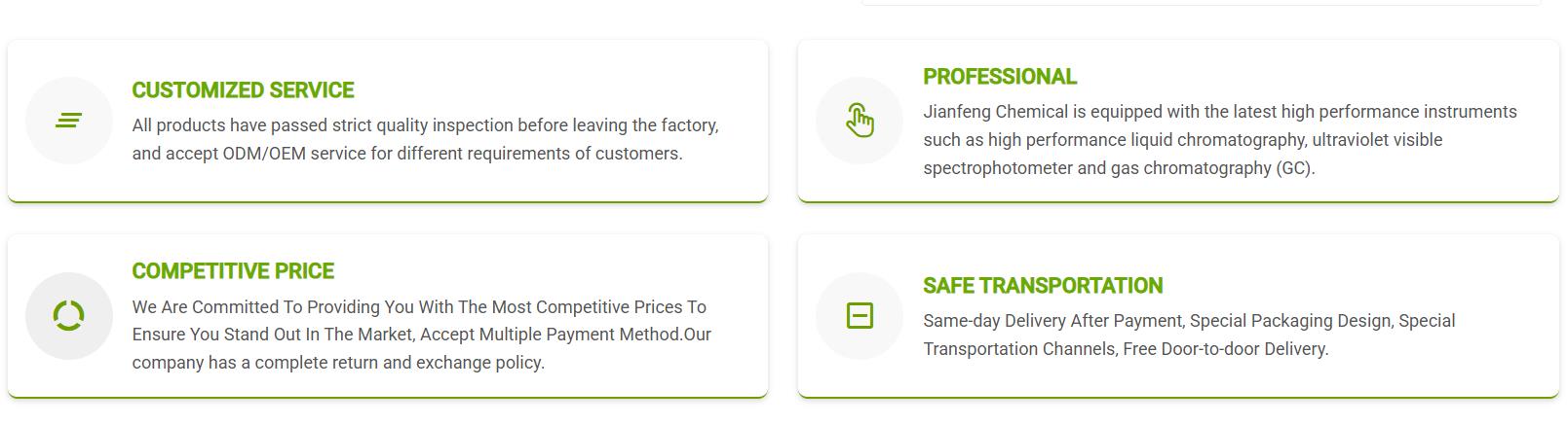 Jianfeng Chemical is a research-driven pharmaceutical company.We have more than 10 years experience in the pharmacy filed. Mainly manufactures pharmaceutical APIs,Pharmaceutical intermediate and Cosmetic raw material.Our main products are Apixaban Intermediate, Lurasidone Intermediate, Peramivir Intermediate,Tianeptine Sodium , Febuxastat , Imatinib Mesylate , Glutathione ect. The products meet USP, EP, JP and CP standards and are available not only in China but also in the US, Germany, Canada, Japan, etc. To meet market demands, Jianfeng set up one R&D center, two GMP workshops and three pharmaceutical & chemical factories.In the principle of "Quality Oriented", Jianfeng passed the certification of ISO9001:2008 Quality Management System.