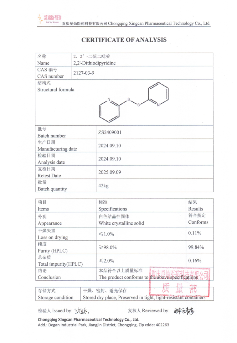 | Product Name: 2,2'-Dithiodipyridine | CAS No.: 2127-03-9 |