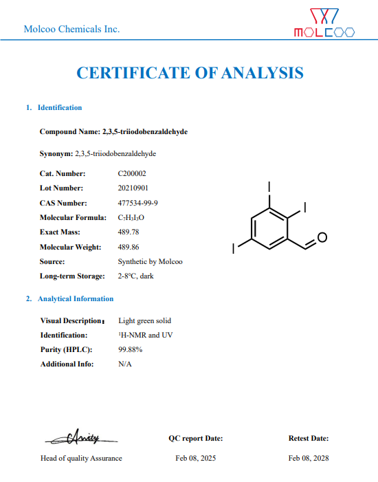 | Product Name: 2,3,5-triiodobenzaldehyde | CAS No.: 477534-99-9 |