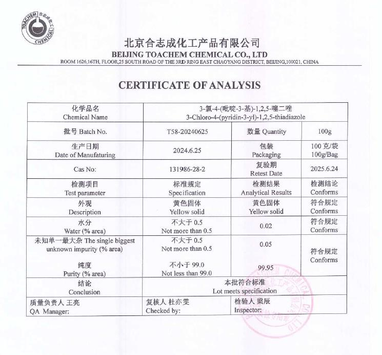 | Product Name: 3-Chloro-4-(pyridin-3-yl)-1,2,5-thiadiazole | CAS No.: 131986-28-2 |