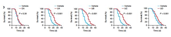 Dongryeol Ryu et al. [1] found in 2016 that compared to populations treated with placebo, feeding nematodes with standard concentrations of 50 µ M UA, UB, UC, or UD from egg to death extended their lifespan by 45.4%, 36.6%, 36.0%, and 19.0%, respectively. In contrast, treatment with the same concentration of ellagic acid (EA) had no effect on lifespan.