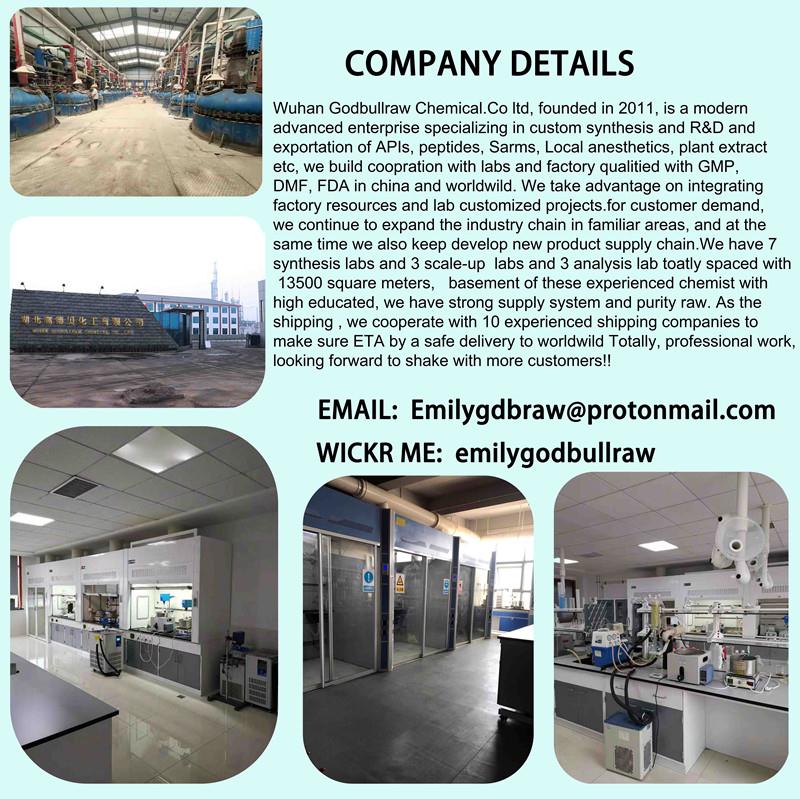 Wuhan Godbullraw CHemical.Co ltd, founded in 2011, is a modern advanced enterprise specializing in custom synthesis and R&D and exportation of APIs, peptides, Sarms, Local anesthetics, plant extract etc, we build coopration with labs and factory qualitied with GMP, DMF, FDA in china and worldwild. We take advantage on integrating factory resources and lab customized projects.for customer demand, we continue to expand the industry chain in familiar areas, and at the same time we also keep develop new product supply chain.