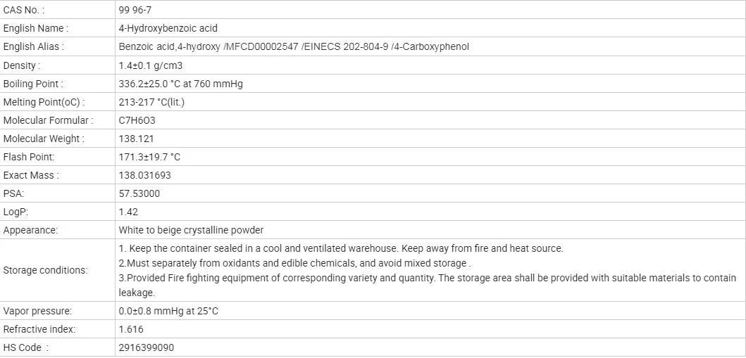 | Product Name: 4-Hydroxybenzoic Acid | CAS No.: 99-96-7 |