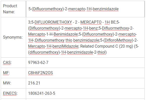 | Product Name: 5-(Difluoromethoxy)-2-mercapto-1H-benzimidazole | CAS No.: 97963-62-7 |