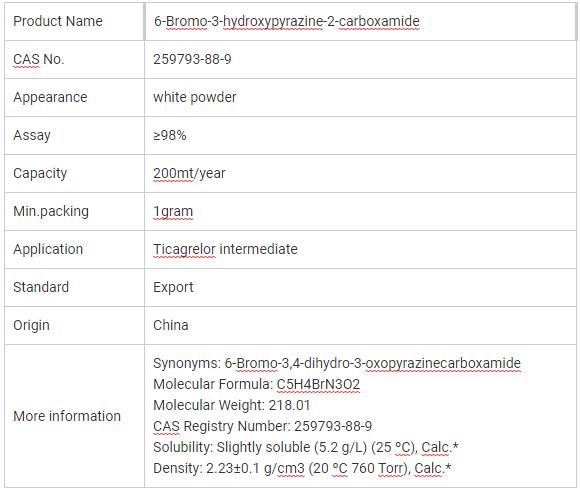 | Product Name: 6-bromo-3-hydroxypyrazine-2-carboxamide | CAS No.: 259793-88-9 |