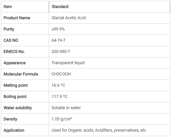 GOOD QUALITY GLACIAL ACETIC ACID 99.8%CAS NO: 64-19-7Molecular Formula: C2H4O2Molecular Weight: 60.05Appearance: Colorless transparent liquid, with irritating