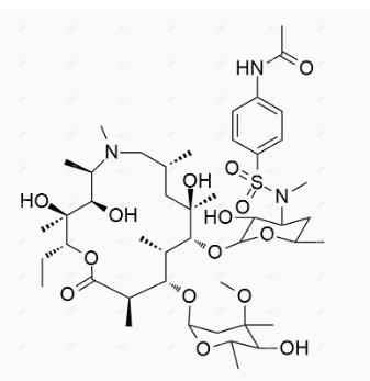 Chemical name:N-(4-(N-((3R,4S,6R)-2-(((2R,3S,4R,5R,8R,10R,11R,12S,13S,14R)-2-ethyl-3,4,10-trihydroxy-13-(((2R,4R,5S,6S)-5-hydroxy-4-methoxy-4,6-dimethyltetrahydro-2H-pyran-2-yl)oxy)-3,5,6,8,10,12,14-heptamethyl-15-oxo-1-oxa-6-azacyclopentadecan-11-yl)oxy)-3-hydroxy-6-methyltetrahydro-2H-pyran-4-yl)-N-methylsulfamoyl)phenyl)acetamide