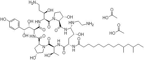 Synonyms:Cancidas; (3S,6S,9S,11R,15S,18S,20R,21S,24S,25S)-21-(2-Aminoethylamino)-3-[3-amino-1(R)-hydroxypropyl]-6-[1(S),2(S)-dihydroxy-2-(4-hydroxyphenyl)ethyl]-18-(10,12-dimethyltetradecanamido)-11,20,25-trihydroxy-15-[1(R)-hydroxyethyl]-1,4,7,13,16,22-hexaazatricyclo[22.3.0.0(9,13)]heptacosane-2,5,8,14,17,23-hexaone diacetate