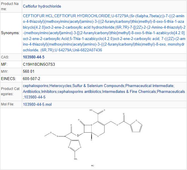 | Product Name: Ceftiofur hydrochloride | CAS No.: 103980-44-5 |