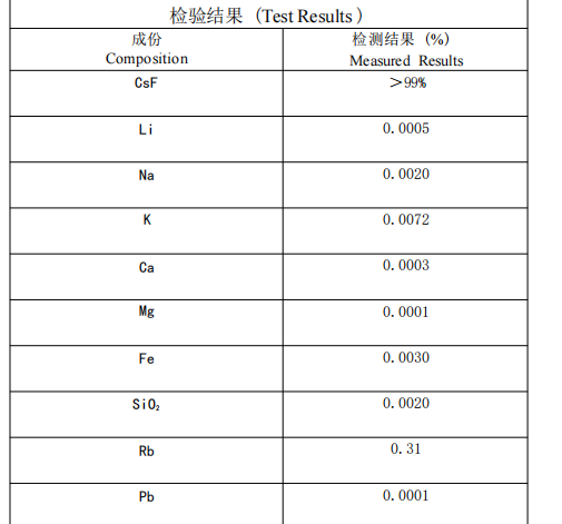 Function and usage: Cesium chloride is mainly used for the preparation of metal caesium and caesium-containing single crystal raw materials, in addition to the preparation of conductive glass and analytical reagents, etc.