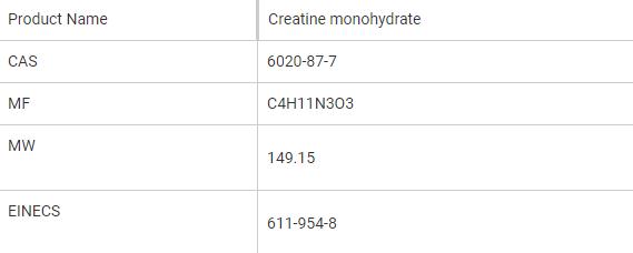 | Product Name: Creatine monohydrate | CAS No.: 6020-87-7 |